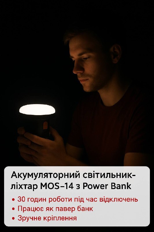 «Дуже універсальна річ! Використовую і як ліхтар, і як невеликий Power Bank. Кріпиться куди завгодно, руки вільні. Під час останнього відключення відпрацював більше 20 годин.»